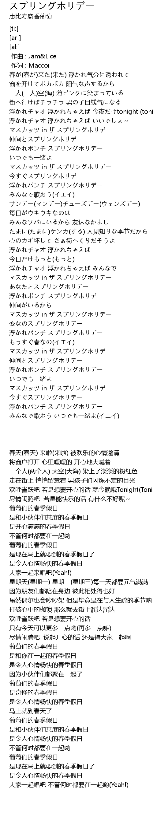 | [02:31.56] | マスカッツ in ザ スプリングホリデー |