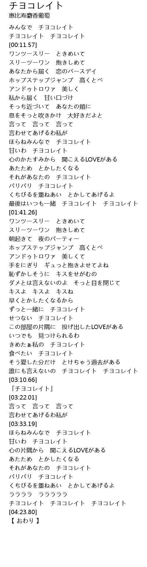 | [04:12.34] | チヨコレイト チヨコレイト チヨコレイト |