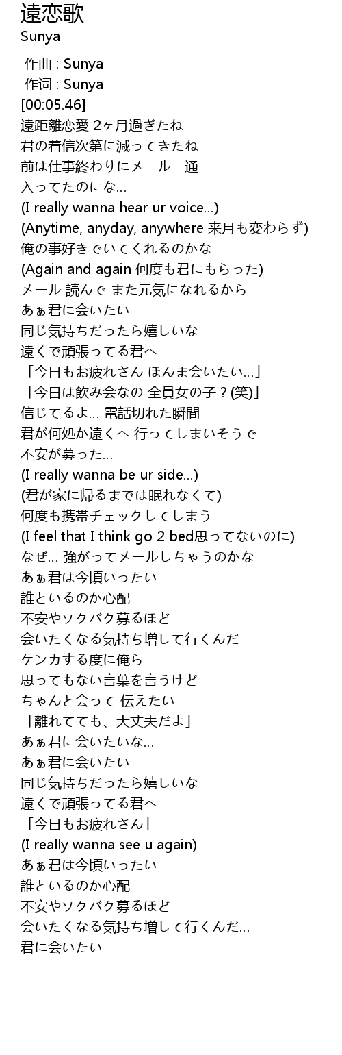 | [00:45.47] | (I really wanna hear ur voice...) |