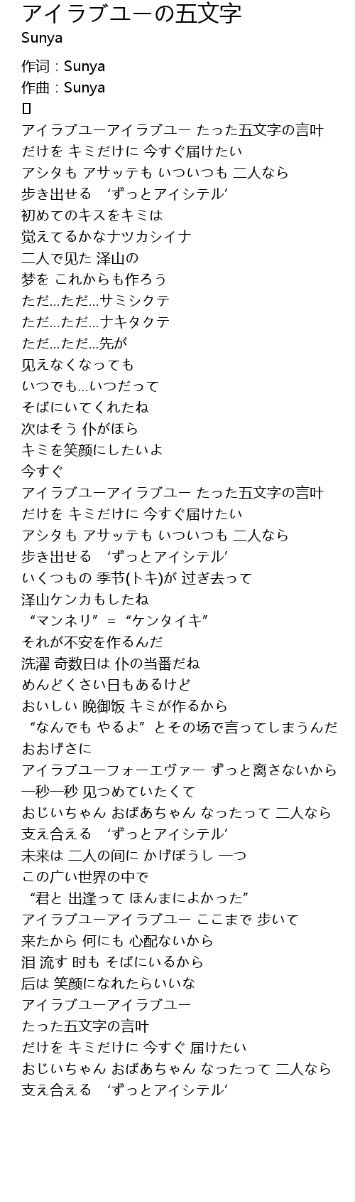 | アイラブユーアイラブユー たった五文字の言叶 | |