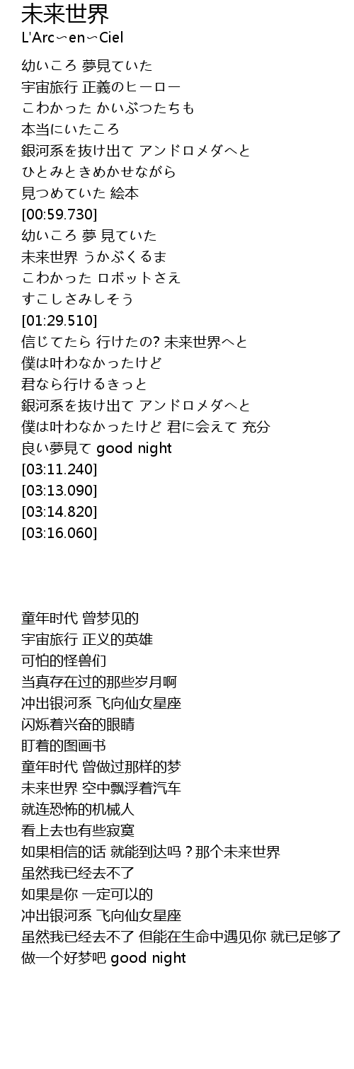 | [01:32.340] | 信じてたら 行けたの? 未来世界へと |