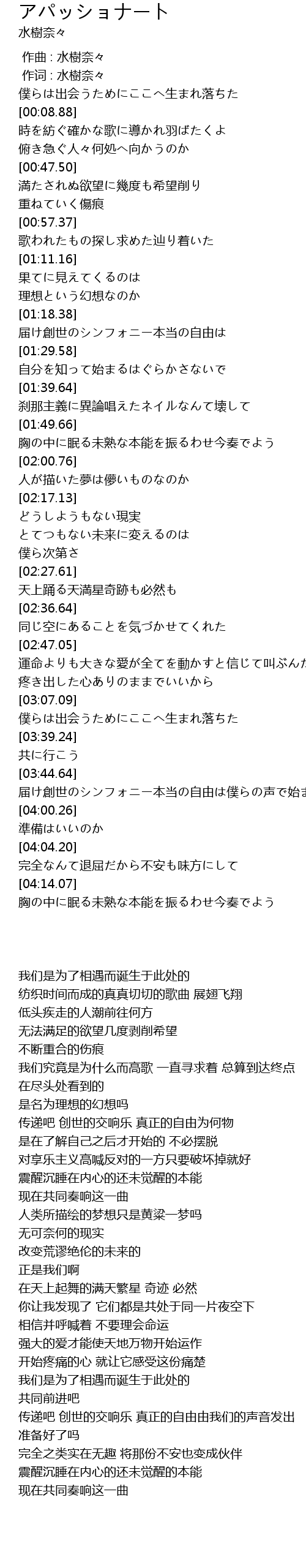 | [03:46.12] | 届け創世のシンフォニー本当の自由は僕らの声で始まる |