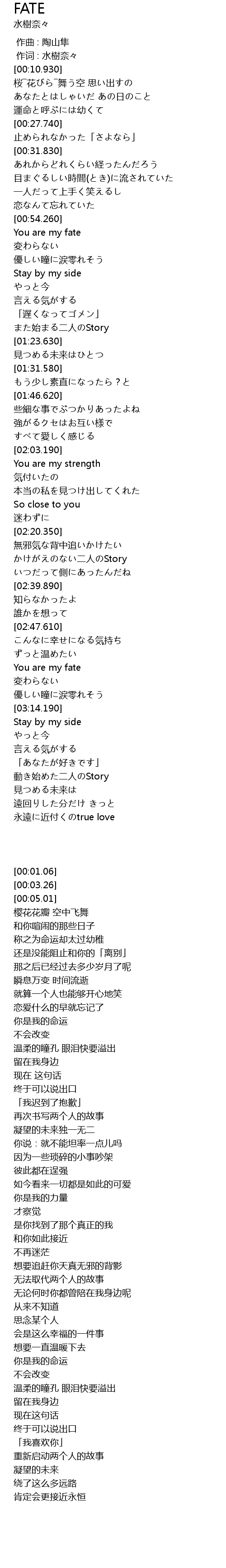 | [03:02.810] | You are my fate |