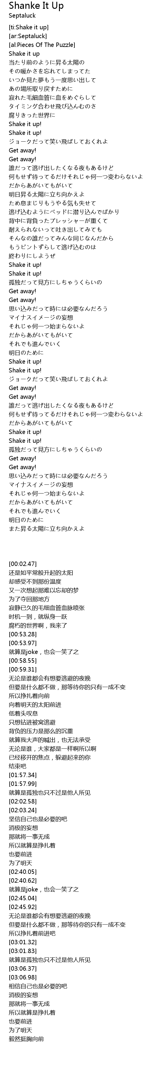 | [00:02.47] | Shake it up |