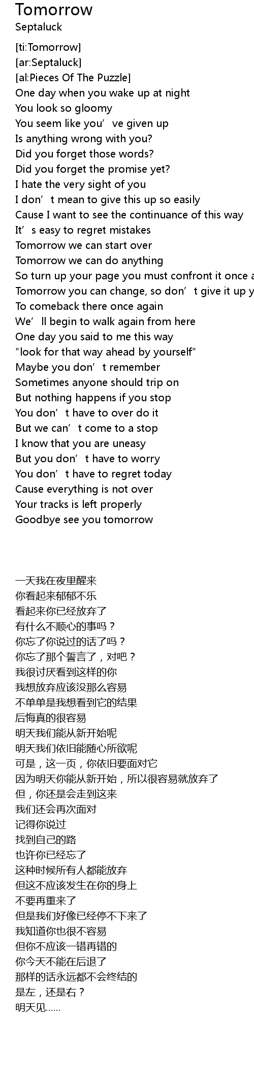 | [00:47.63] | Tomorrow you can change, so don' t give it up yet |