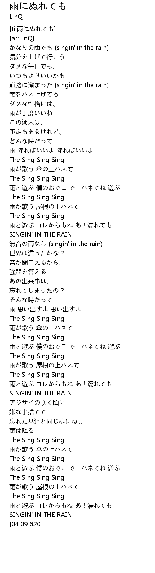 | [04:05.730] | SINGIN' IN THE RAIN |