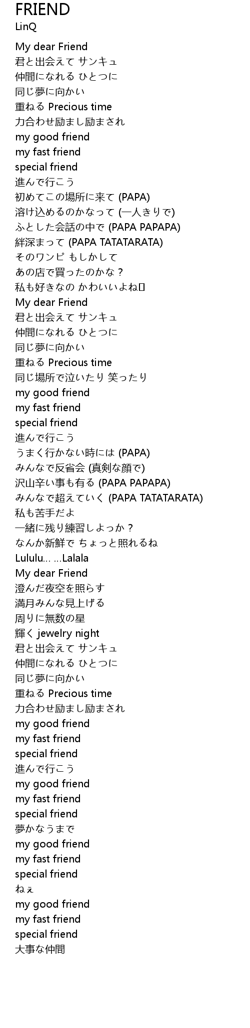 | Song | FRIEND |