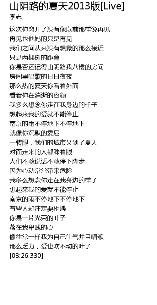 | [01:28.070] | 你是否还记得山阴路我八楼的房间 |