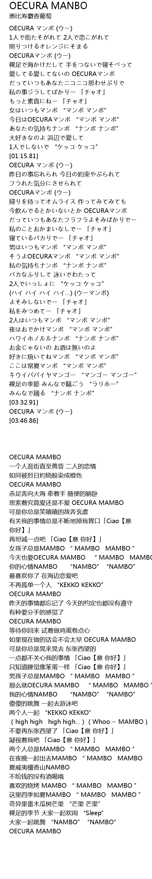 | [03:42.86] | OECURA マンボ (ウー) |