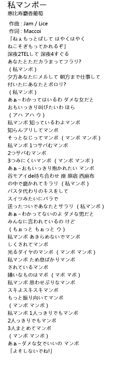 | [03:23.14] | 私マンボ 思わせぶりなマンボ |
