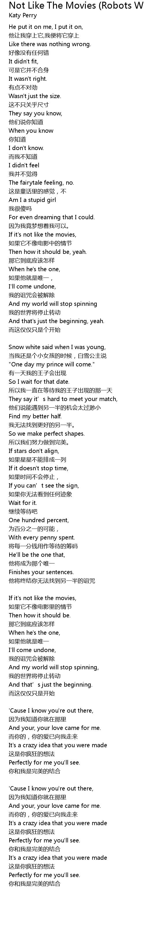 | Song | Not Like The Movies (Robots With Rayguns Remix) |
