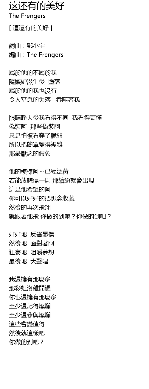 | 編曲:The Frengers | |