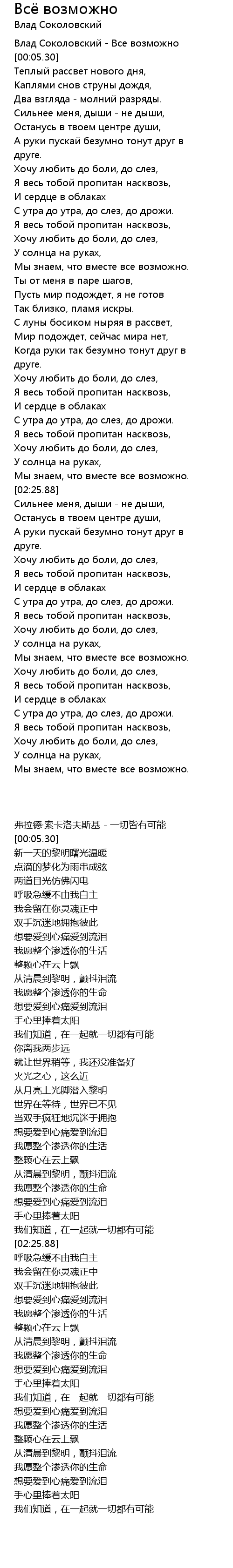 [00:00.80] Влад Соколовский - Все возможно