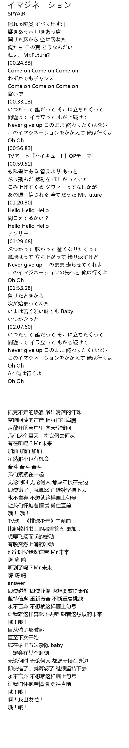 | [00:58.15] | TVアニメ「ハイキュー!!」OPテーマ |