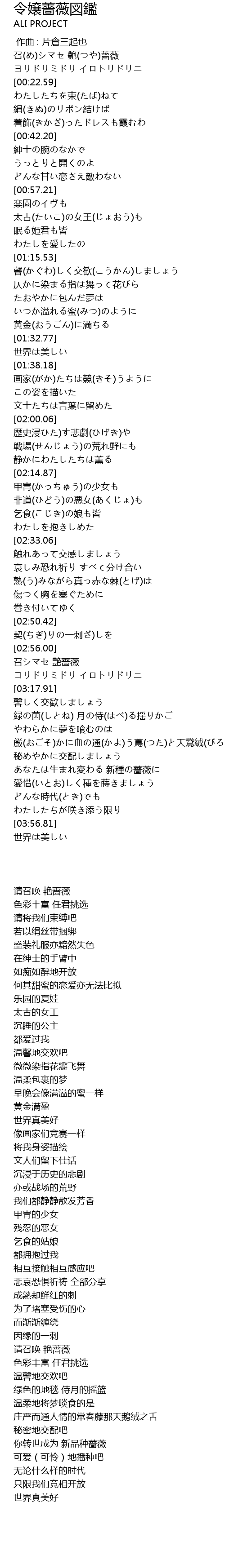 | [03:10.49] | 召シマセ 艶薔薇 |