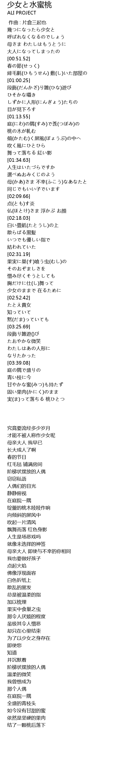 | [03:53.11] | 実(ま)って落ちる 桃ひとつ |