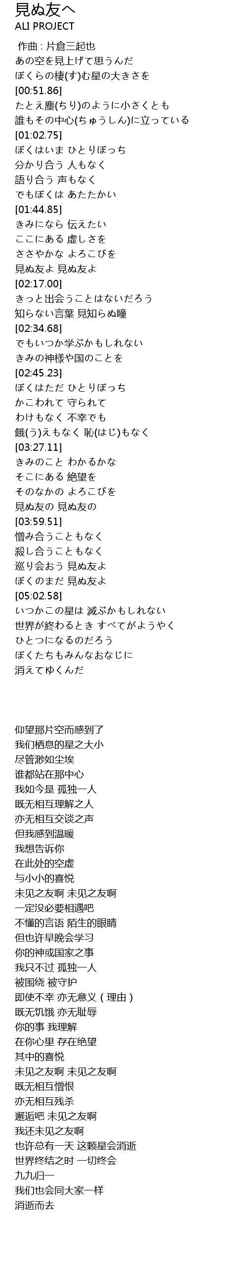 | [04:53.67] | ぼくのまだ 見ぬ友よ |