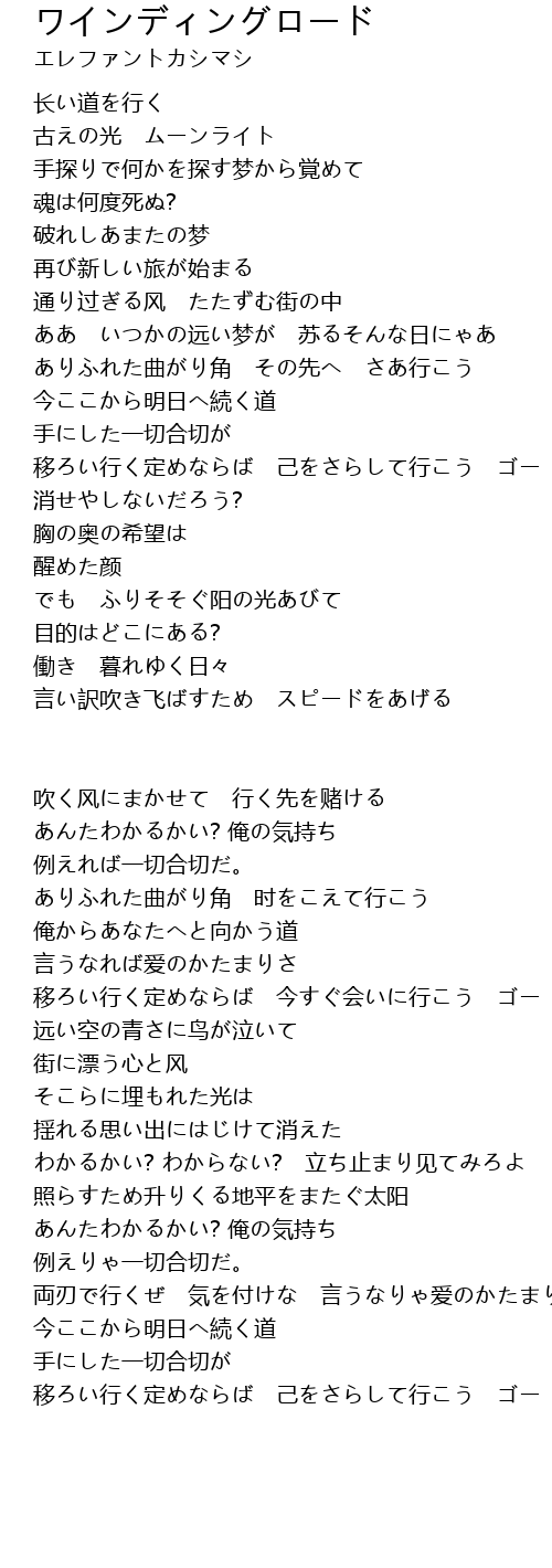 | 移ろい行く定めならば 己をさらして行こう ゴー | |