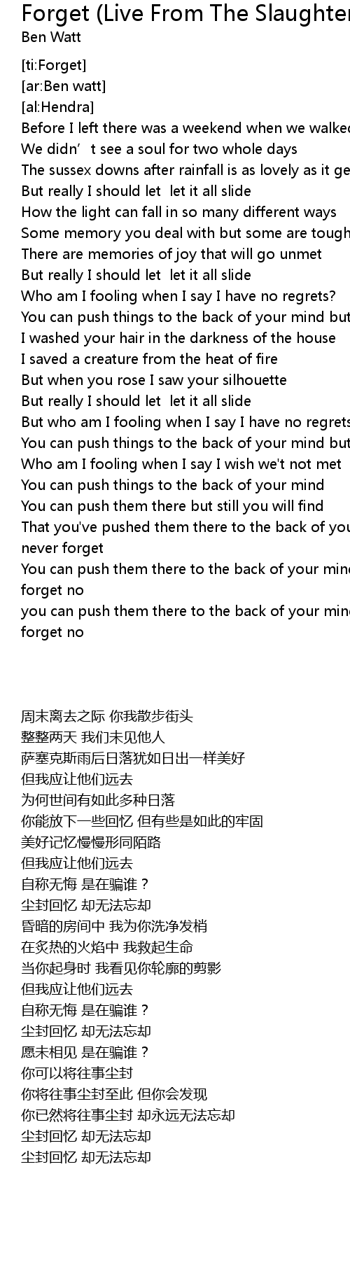 | [01:44.27] | You can push things to the back of your mind but you can never forget |