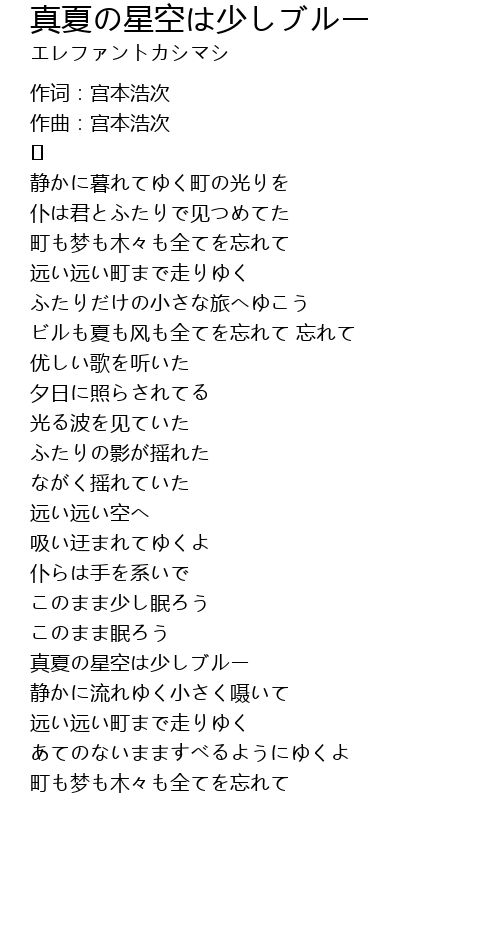 | ビルも夏も风も全てを忘れて 忘れて | |