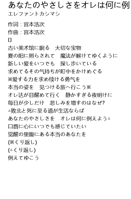 | あなたのやさしさを オレは何に例えよう△ | |