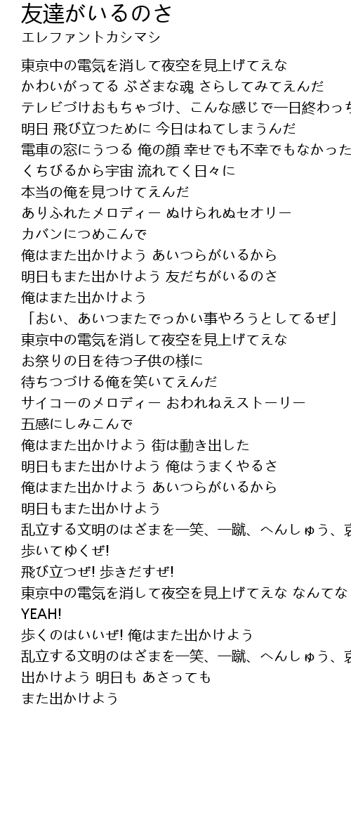 | 明日もまた出かけよう 友だちがいるのさ | |