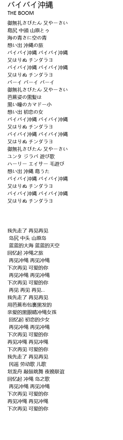 | [01:23.20] | バイバイ沖縄 バイバイ沖縄 |