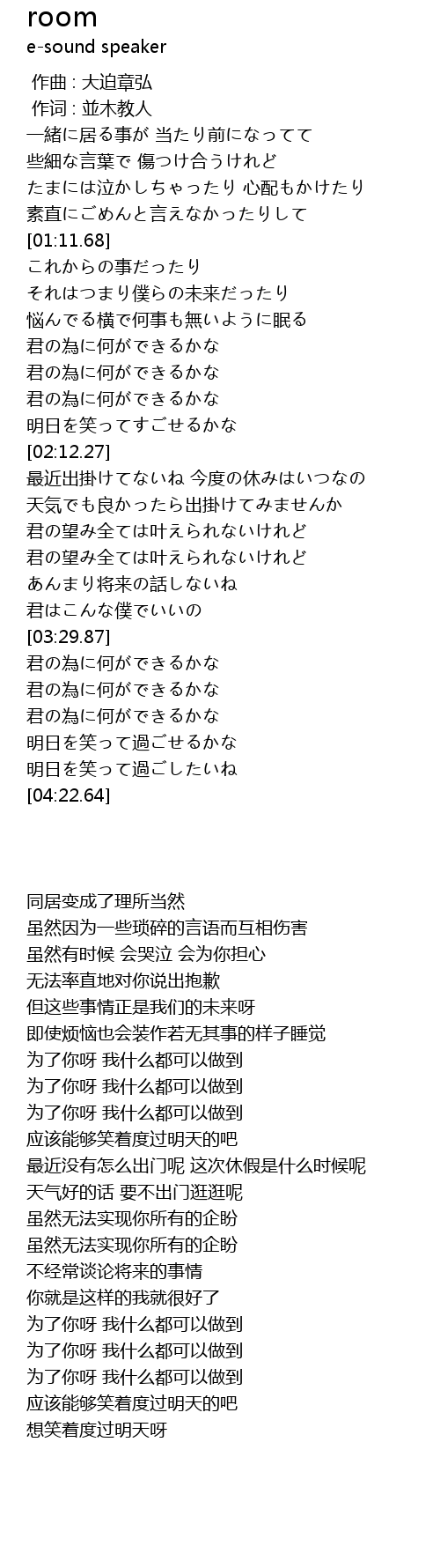 | [01:36.37] | 悩んでる横で何事も無いように眠る |