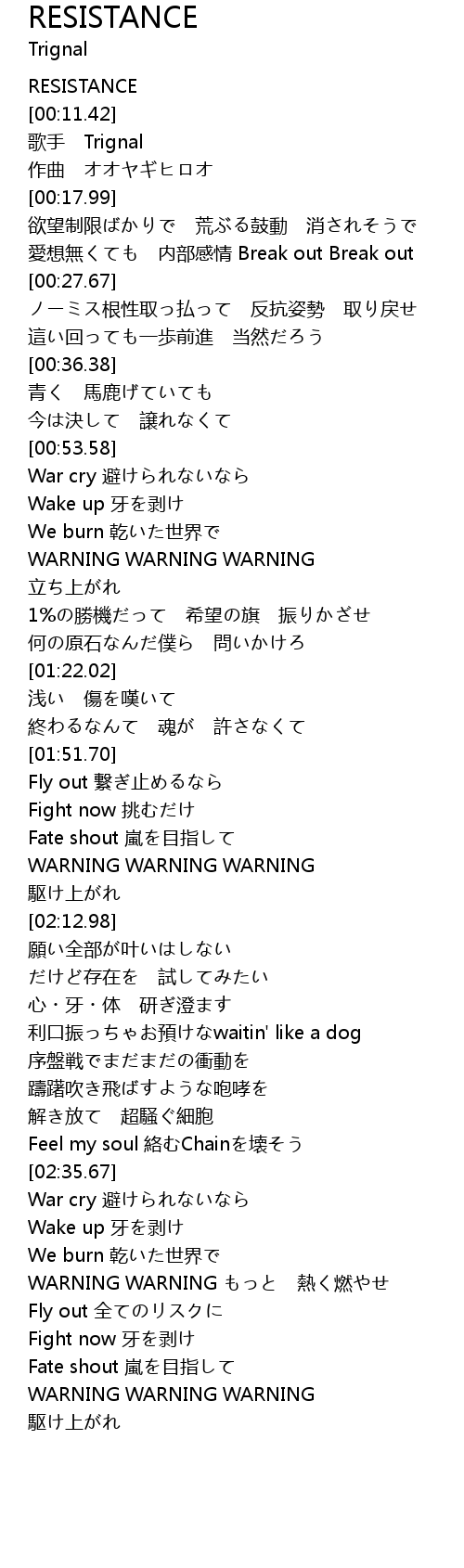 | [02:49.65] | WARNING WARNING もっと 熱く燃やせ |