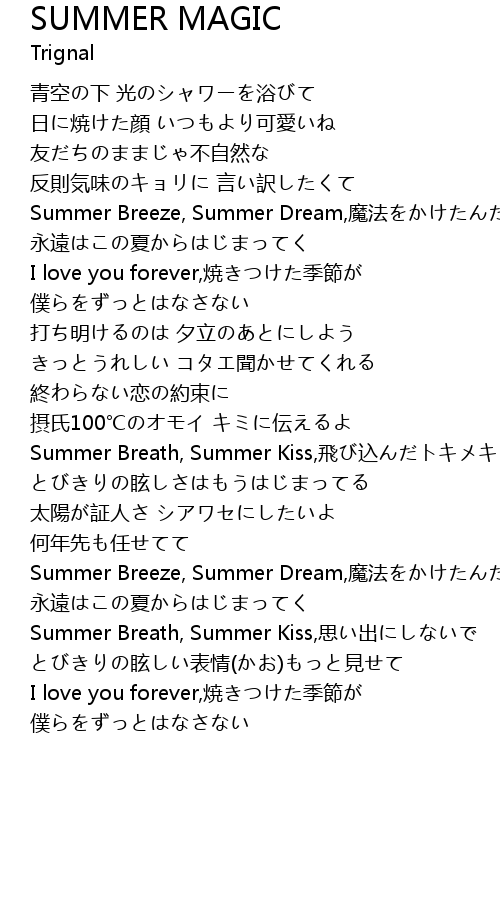 | Summer Breeze, Summer Dream,魔法をかけたんだ | |