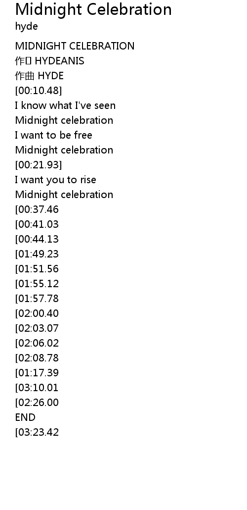 | [00:02.70] | MIDNIGHT CELEBRATION |
