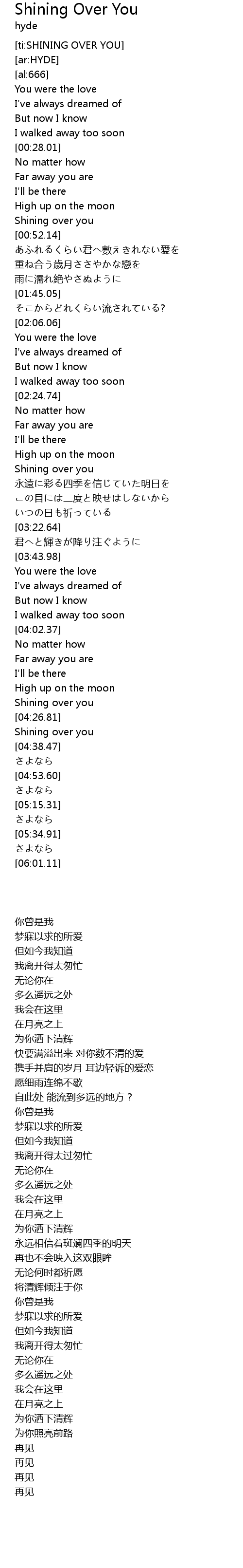 | [00:46.44] | Shining over you |