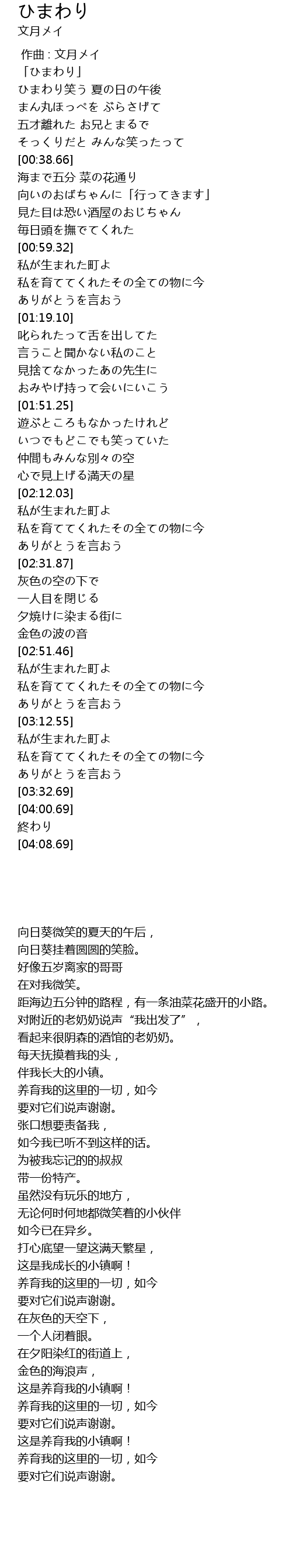 | [00:18.85] | ひまわり笑う 夏の日の午後 |