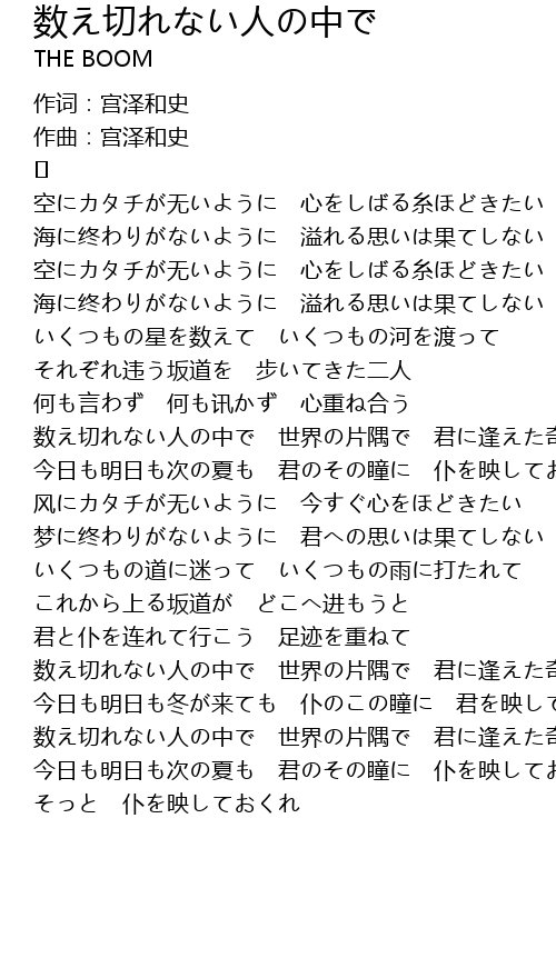 | 数え切れない人の中で 世界の片隅で 君に逢えた奇迹 | |
