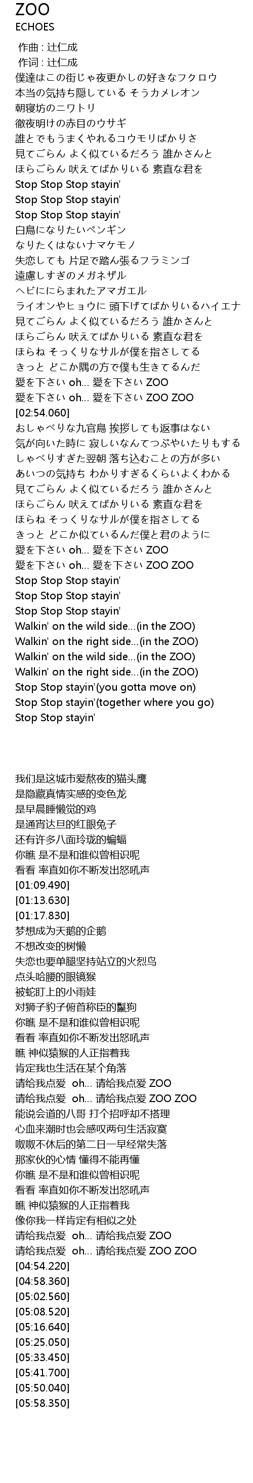 | [05:25.050] | Walkin' on the wild side…(in the ZOO) |