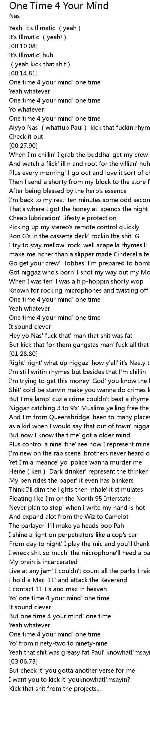 | [02:56.68] | One time 4 your mind' one time |