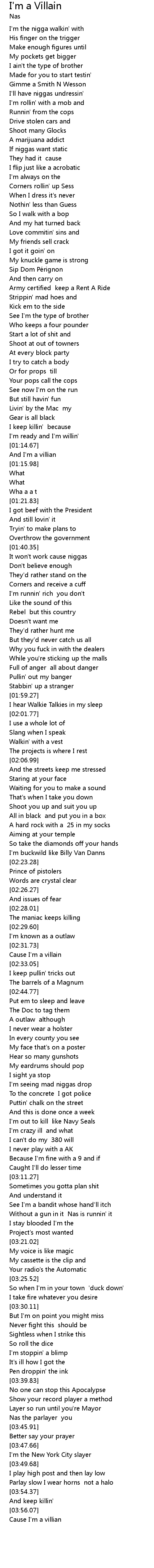 | [03:16.55] | Without a gun in it Nas is runnin' it |
