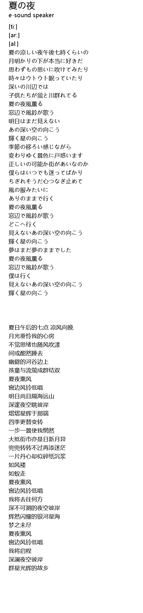 | [00:22.24] | 夏の涼しい夜午後七時くらいの |