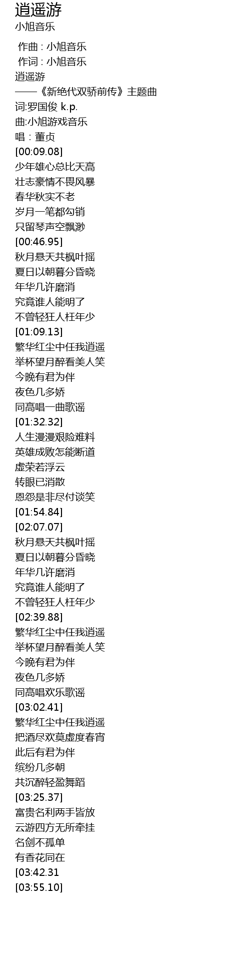 | [00:01.94] | ——《新绝代双骄前传》主题曲 |