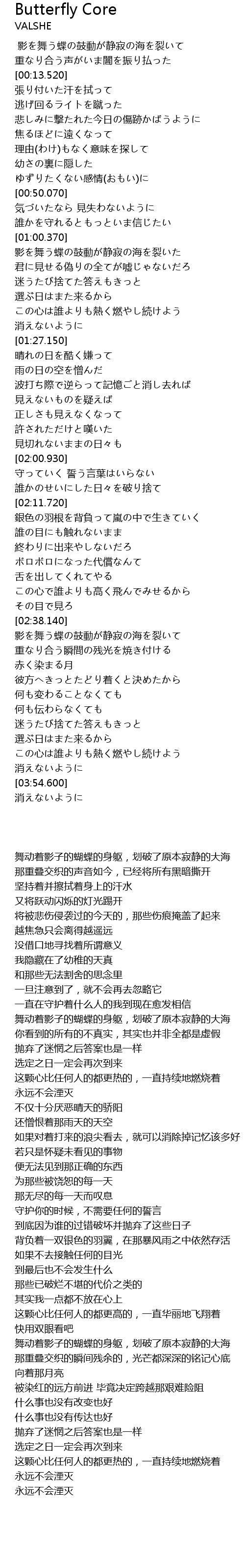 | [03:18.220] | 影を舞う蝶の鼓動が静寂の海を裂いて |