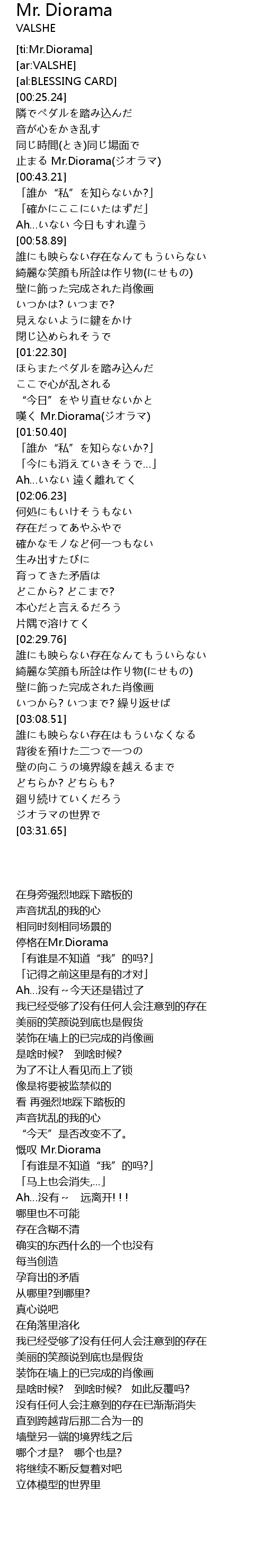 | [00:40.20] | 止まる Mr.Diorama(ジオラマ) |