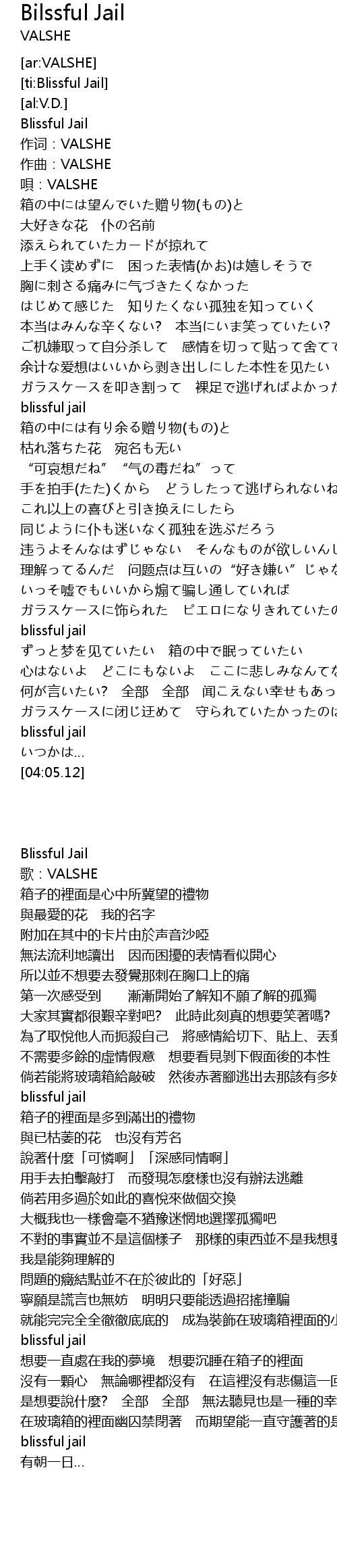 | [03:22.31] | ずっと梦を见ていたい 箱の中で眠っていたい |