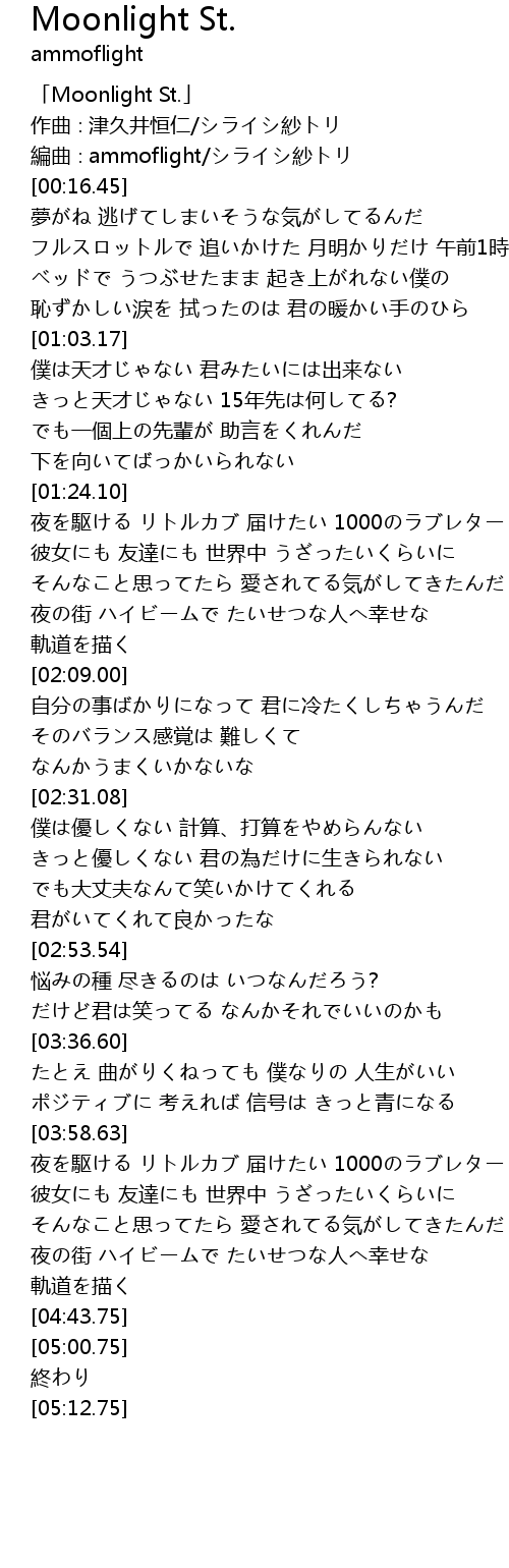 | [03:59.36] | 夜を駆ける リトルカブ 届けたい 1000のラブレター |