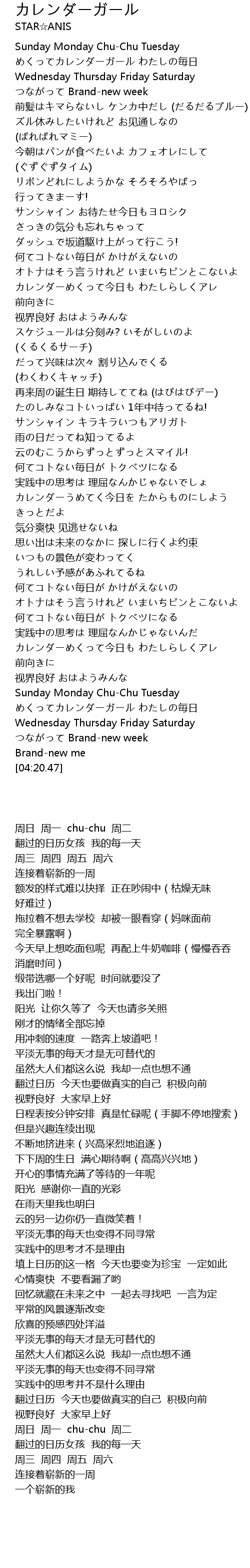 | [00:04.35] | めくってカレンダーガール わたしの毎日 |