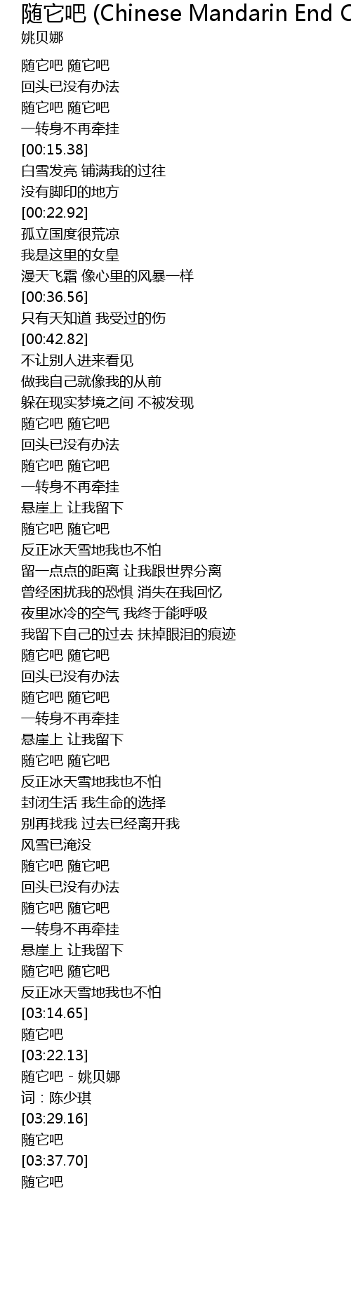 | [03:24.97] | 随它吧 - 姚贝娜 |