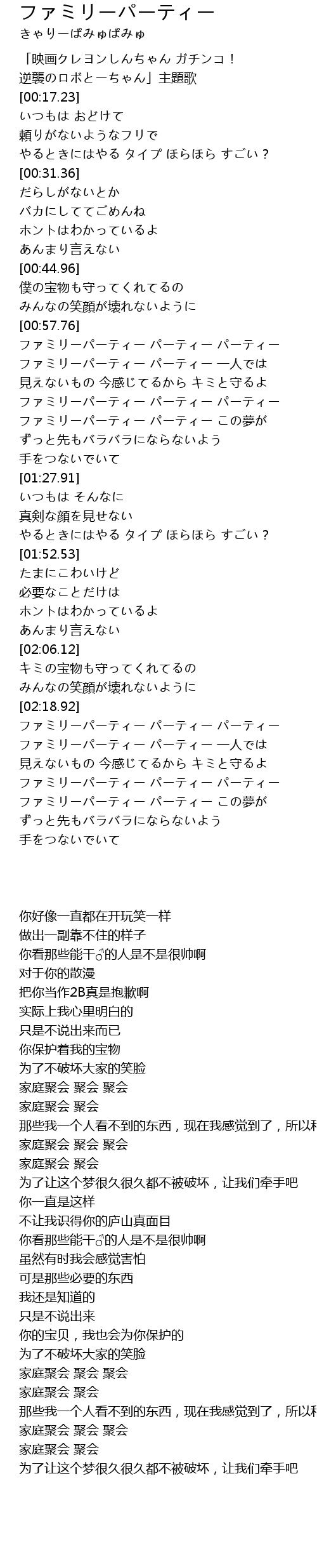 | [01:12.41] | ファミリーパーティー パーティー パーティー |