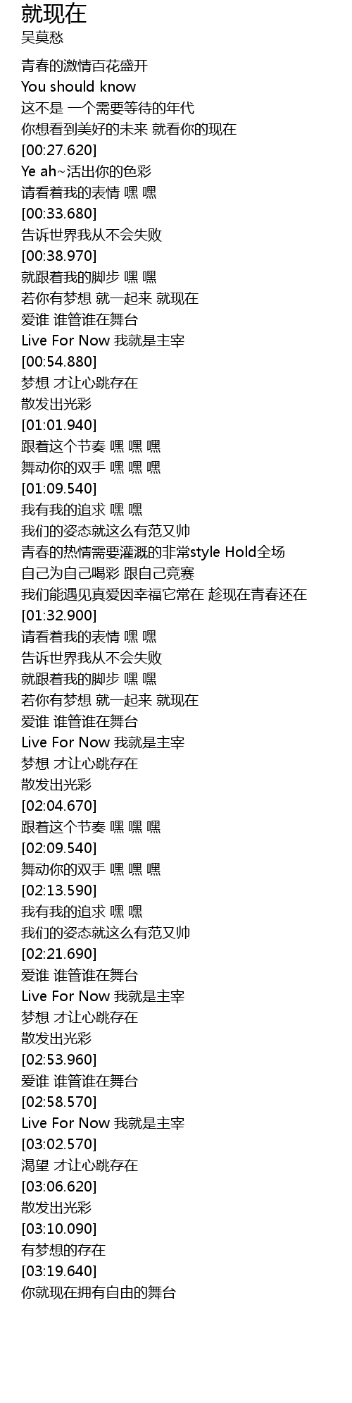 | [02:43.410] | Live For Now wǒ jiù shì zhǔ zǎi |