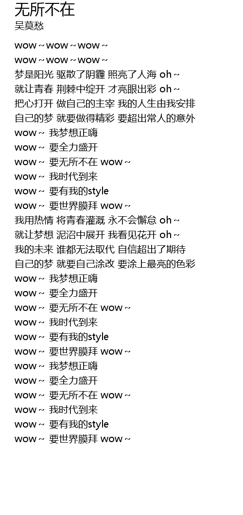 | [02:58.69] | wow~ 要无所不在 wow~ |