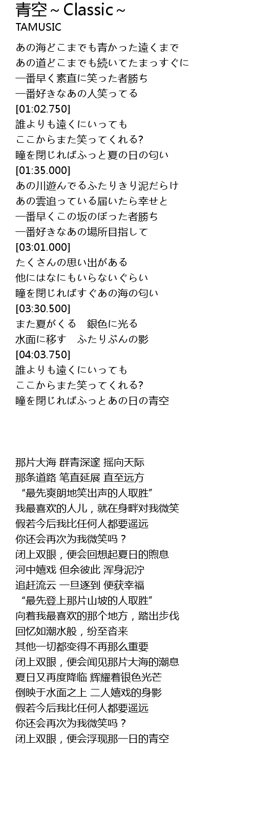 | [00:00.500] | あの海どこまでも青かった遠くまで |