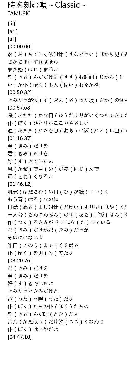 | [04:18.08] | 仆(ぼく)たちの仆(ぼく)たちの |